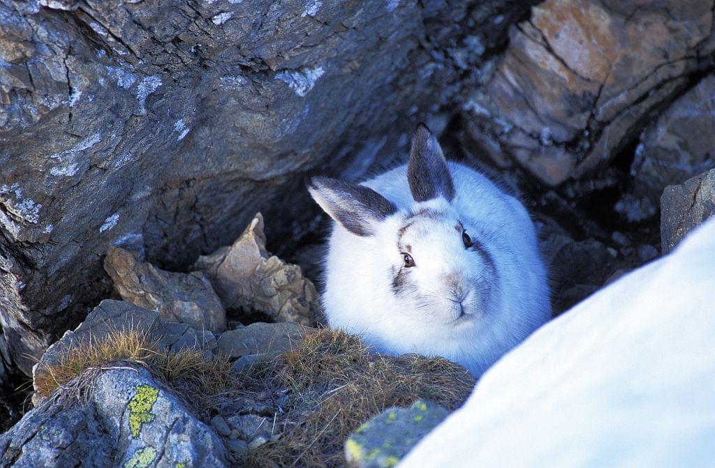 Le lièvre variable est une espèce emblématique de la haute altitude. On la surnomme « espèce blanche » en référence à son manteau d’hiver qui lui permet de se fondre dans le décor et de passer inaperçue. Dans un univers en pleine mutation, cette espèce est d’ores et déjà réfugiée climatique sur les sommets des Alpes.