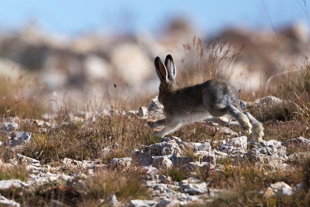 Avec le changement climatique, les conditions optimales pour les espèces blanches se décalent en altitude. Elles risquent d’être concurrencées par des espèces venues des plaines comme le lièvre d’Europe...