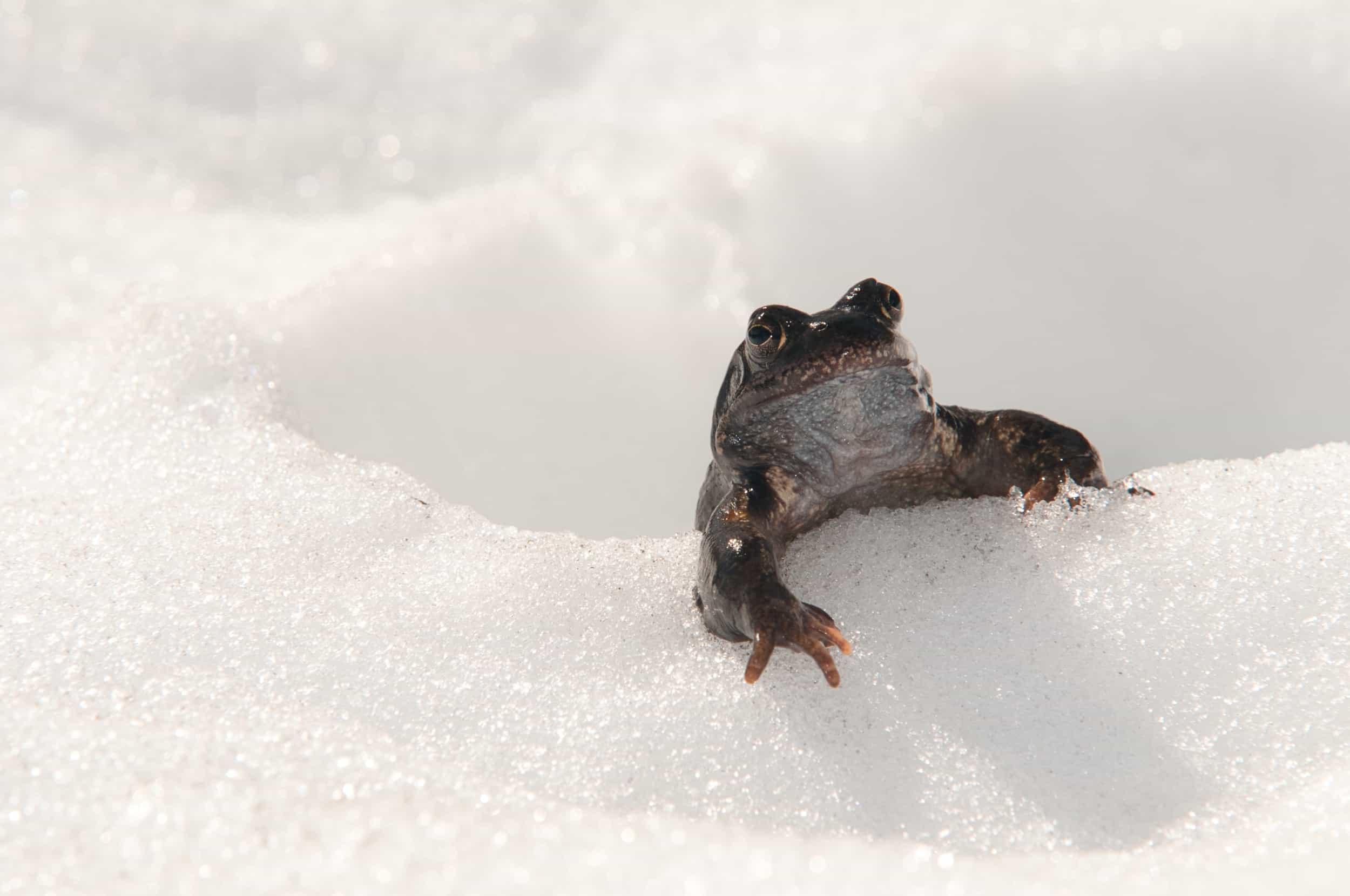 Un déneigement de plus en plus précoce, lié à une faible couverture neigeuse ou à des températures printanières élevées, est une aubaine pour les grenouilles qui pondent dès les mares déneigées. Elles offrent ainsi à leur progéniture un temps plus long pour se développer, même en altitude. A condition que les oeufs échappent au gel printanier : même si la neige disparaît de plus en plus tôt, le risque de températures négatives persiste même lorsque les grenouilles ont pondu.